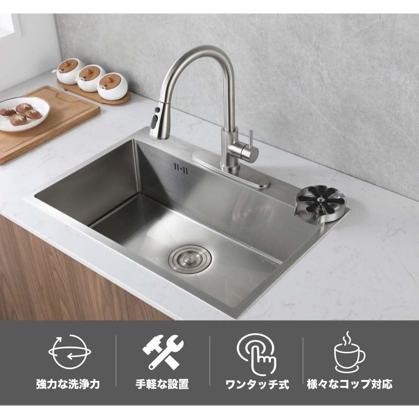また、おしゃれなデザインでシンクに置いても違和感のない外観。スマートでコンパクトなサイズ感で邪魔になることもありません。日々の生活をより快適にするアイテムです。